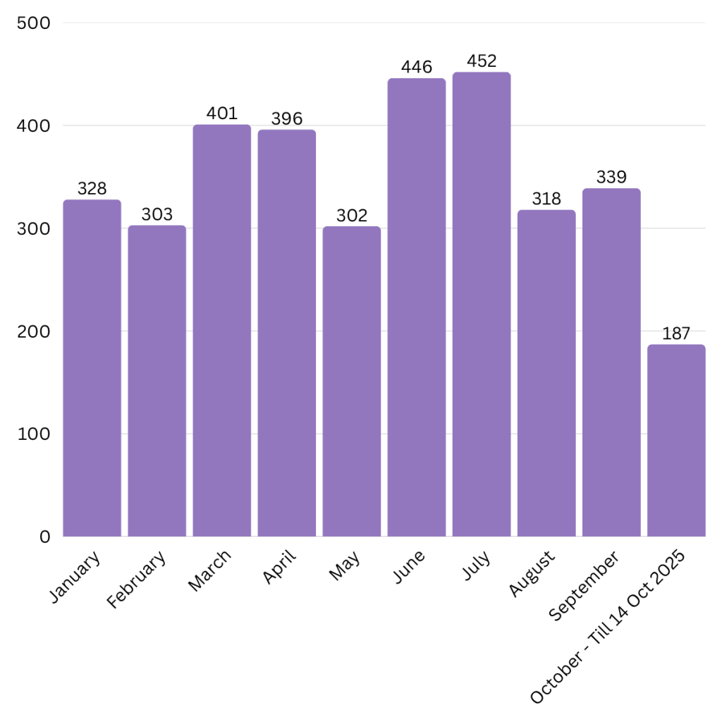 July 2025 had the highest number of publications (452 in one month), suggesting a mid-year spike in AML/financial crime regulatory activity.